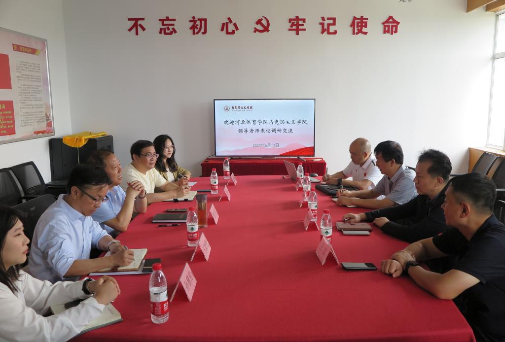 2024年6月13日,河北体育学院澳门十大信誉好的网站院长周德胜一行5人来十大信誉官网调研交流。澳门十大信誉好的网站党委书记、副院长、教学部主任等参加了此次活动。