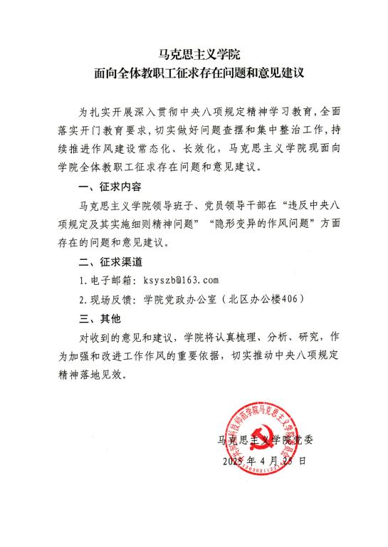 澳门十大信誉好的网站面向全体教职工征求存在问题和意见建议