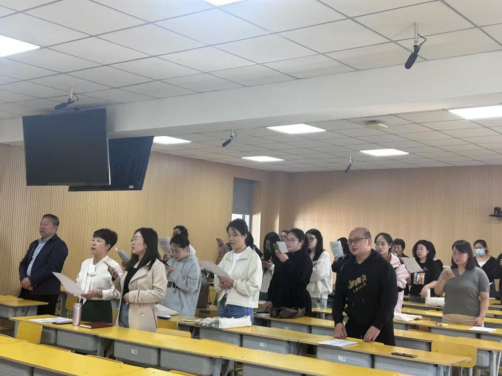 彭洪林老师就合唱的团队和谐的平衡、发声技巧与呼吸控制等方面进行深入指导,指明了在合唱中存在的问题,强调停顿、重音、声调等技巧,经过指导后的合唱更加抑扬顿挫、气势磅礴。现场教学指导气氛热烈,同时也激发了老师们的合唱热情。( 编辑:王伶月 审核人:郭立昌)