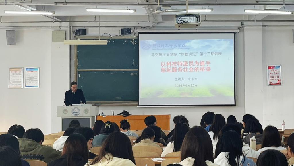 2024年4月25日,旗帜讲坛第十三期讲座在秦皇岛校区B303举办。澳门十大信誉好的网站教师代表、秦皇岛校区各学院学生代表在现场聆听讲座。